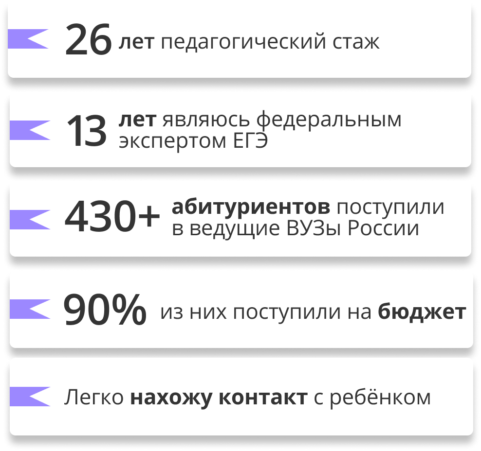 Опыт работы преподавателя курса более 26 лет. Экспертом ЕГЭ — 13 лет.
